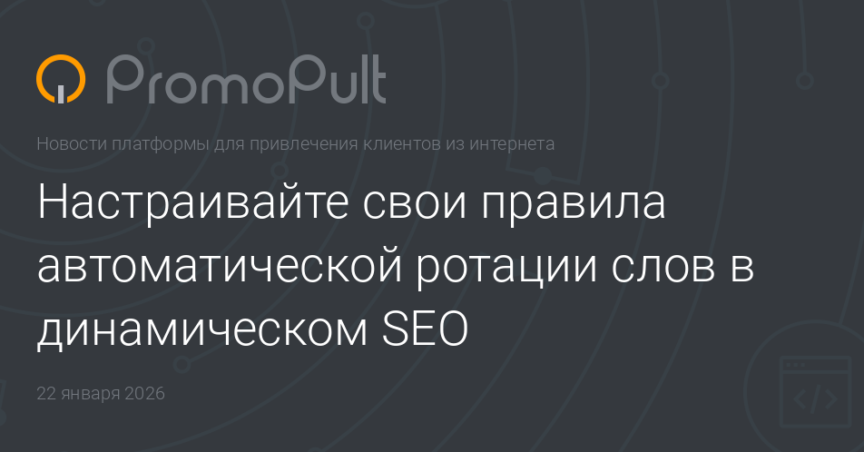 Проекты динамического SEO отличаются от классического тем, что список запросов постоянно ротируется в зависимости от эффективности ключевых слов — того, сколько они приносят трафика и конверсий при заданном бюджете. До сих пор запросы заменялись AI-алгоритмами PromoPult. Мы реализовали возможность контролировать этот процесс, задавая вручную условия автоматической ротации.